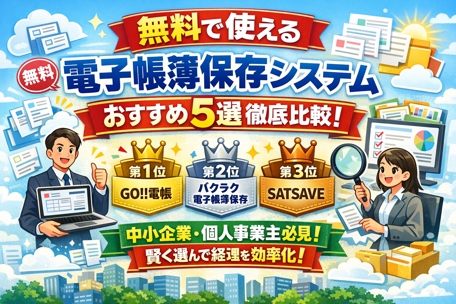 無料で使える電子帳簿保存システムおすすめ5選徹底比較をまとめました