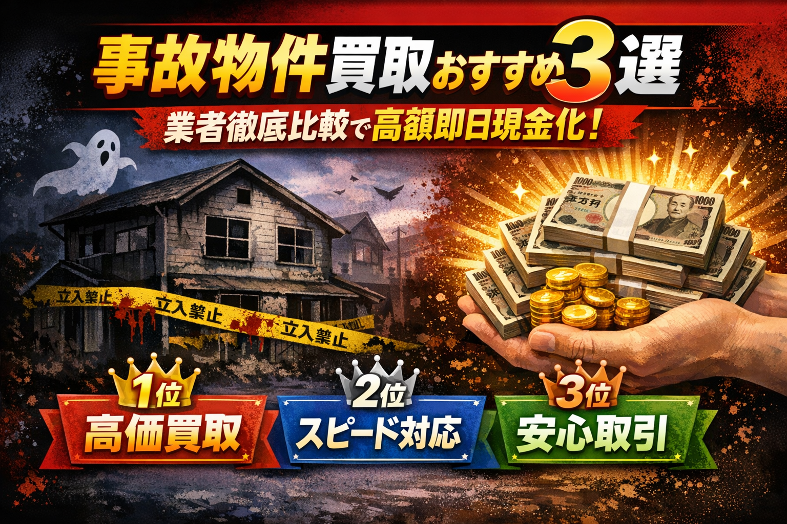 事故物件買取おすすめ3選|業者徹底比較で高額即日現金化をまとめました