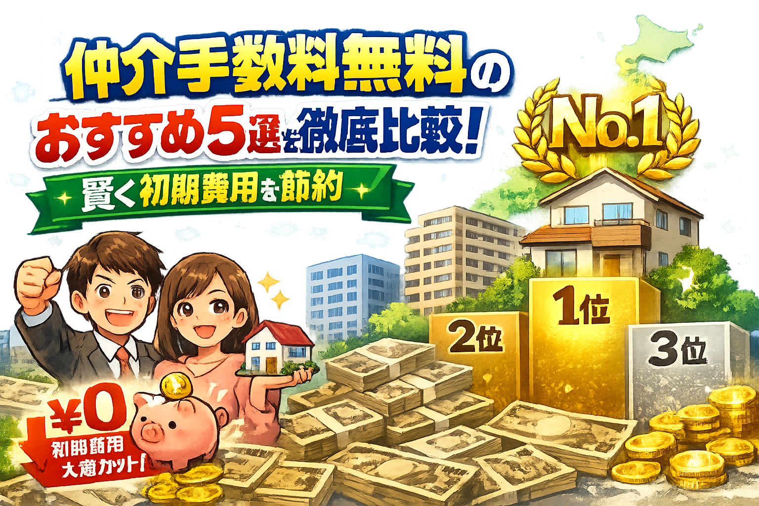 仲介手数料無料のおすすめ5選を徹底比較!賢く初期費用を節約
