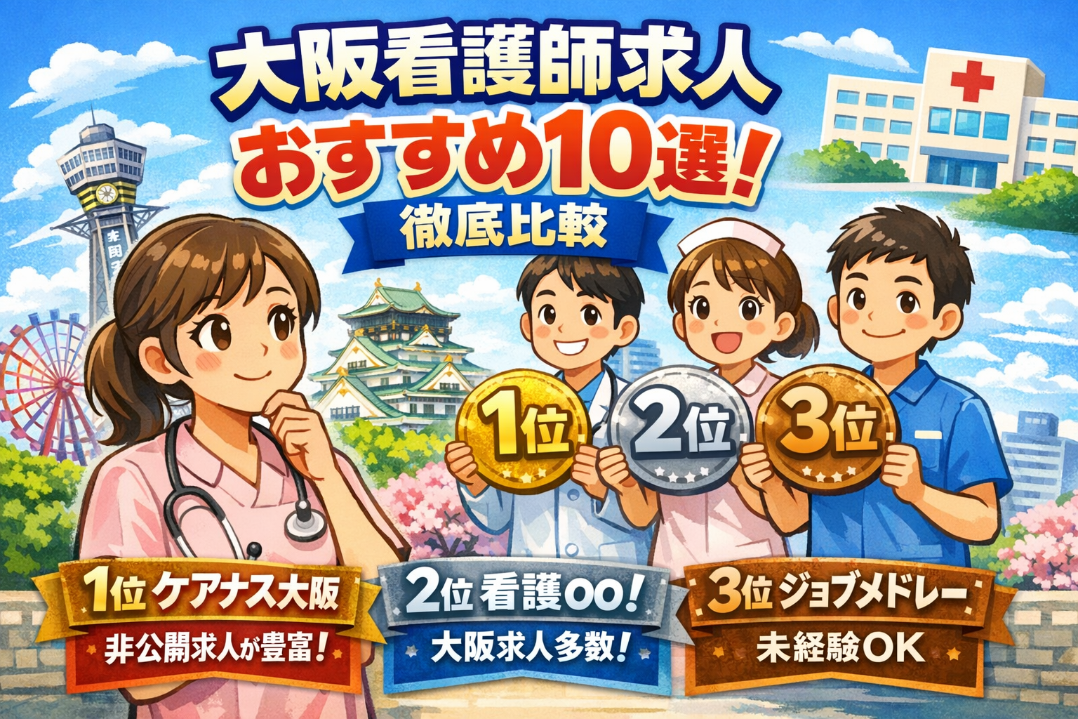 大阪看護師求人のおすすめを徹底比較。ケアナス大阪を筆頭に、あなたの転職をサポートします。