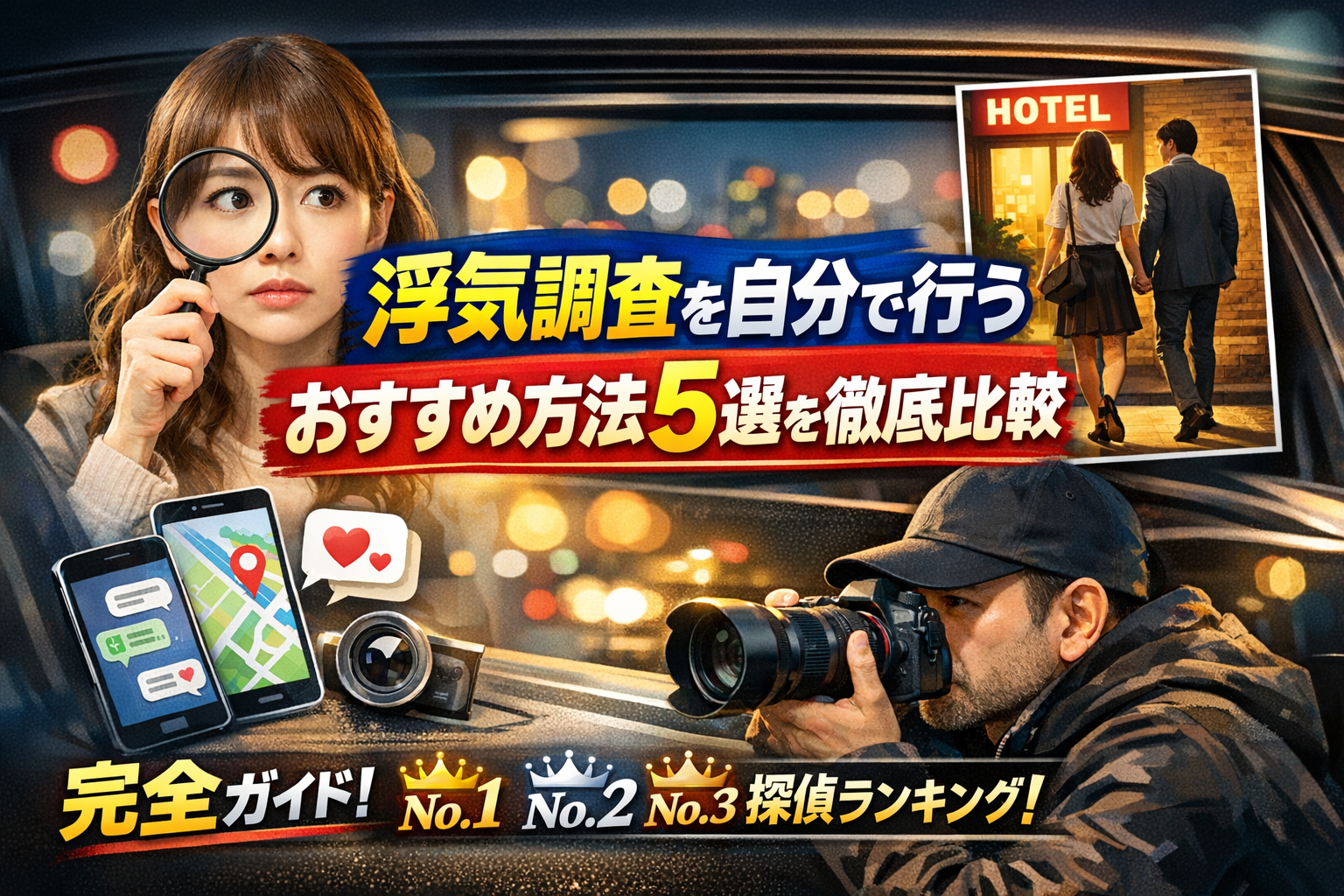 浮気調査を自分で行うおすすめ方法5選を徹底比較をまとめました