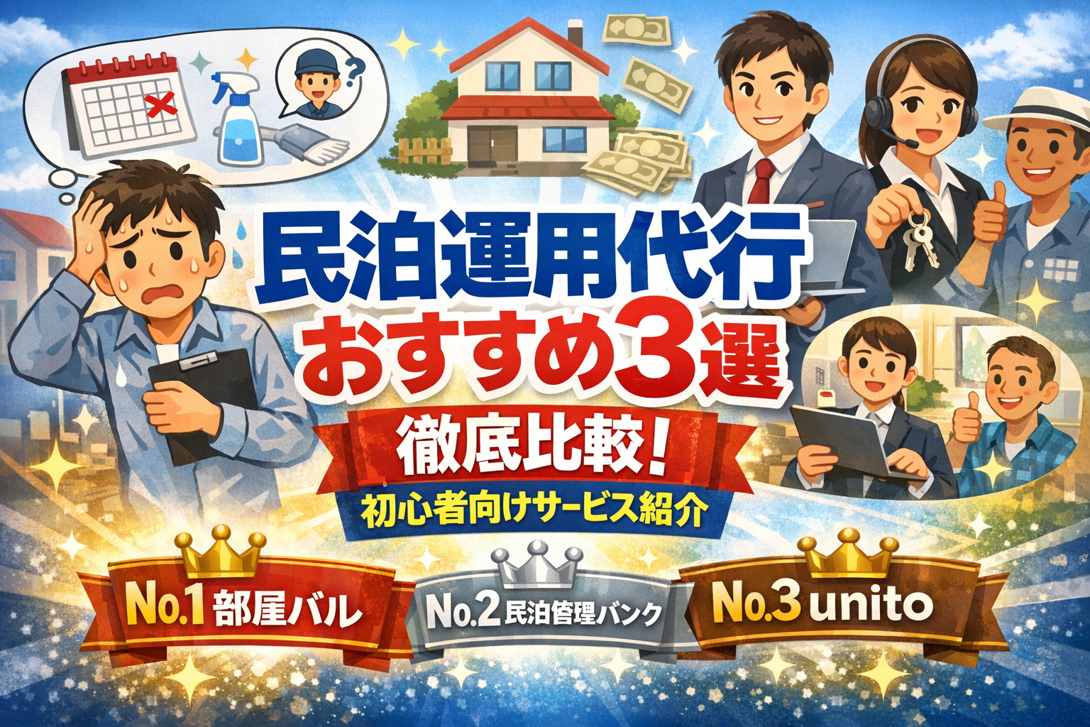 民泊運営は予約管理や清掃、ゲスト対応が大変で、初心者や忙しい人は負担が大きいですよね。この記事では、民泊運用代行のおすすめランキングを徹底比較。1位の部屋バルを中心に、選び方のポイントや比較表で最適なサービスを選べるようまとめました。