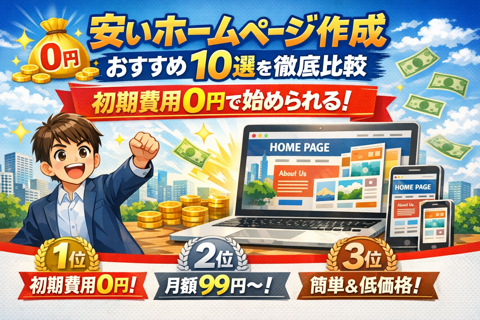 ホームページを作りたいけど、費用が不安で手が出せないという方は多いですよね。安いサービスを探しても、結局追加料金が発生したり、品質が心配になったり…。この記事では、初心者でも安心の安いホームページ作成サービスを厳選して紹介します。初期費用0円・月額1万円以内の本当におすすめを比較しながら、あなたにぴったりのものを選べるよう詳しく解説します。