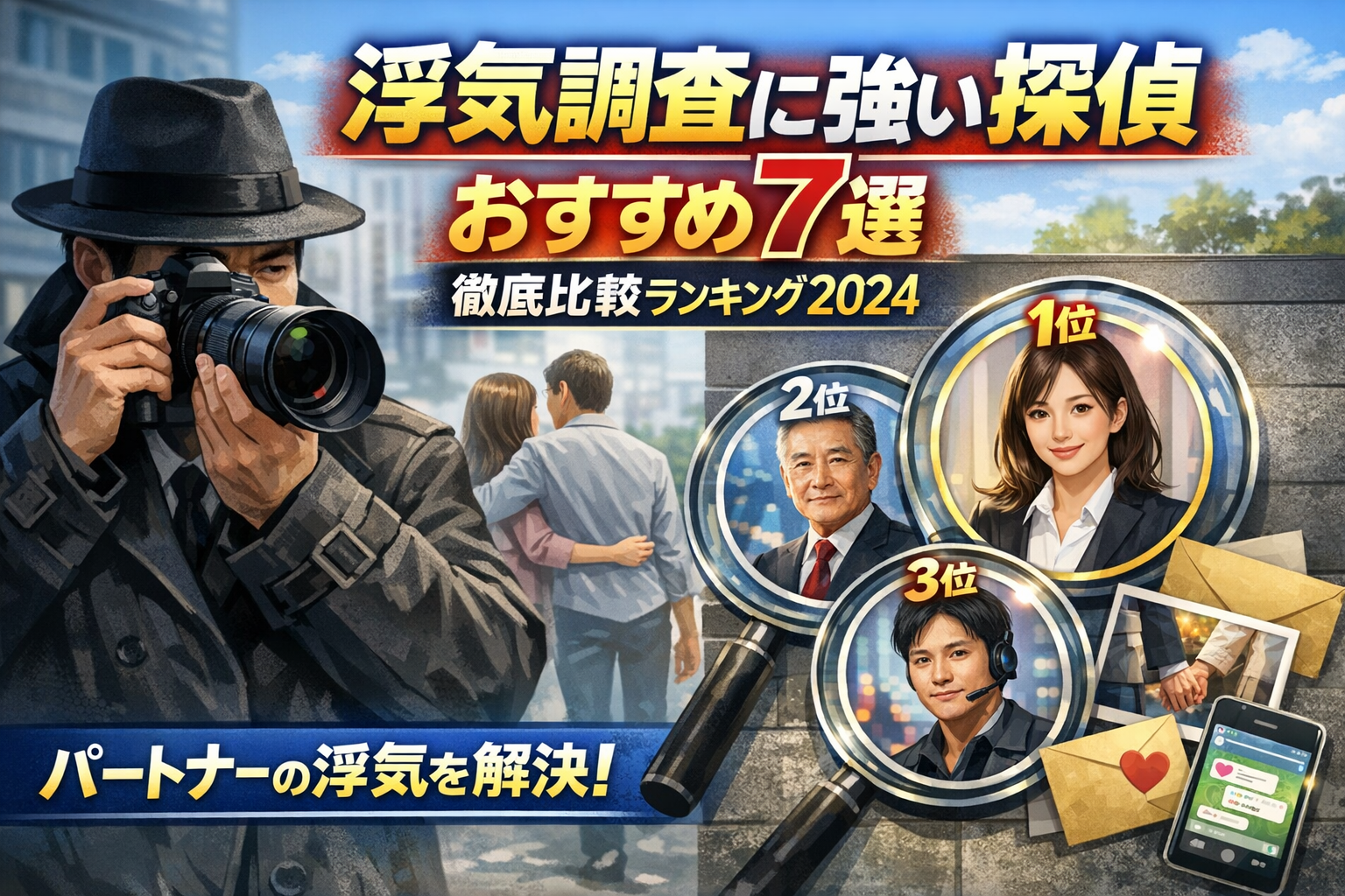 浮気調査に強い探偵おすすめ7選|徹底比較ランキング2024をまとめました