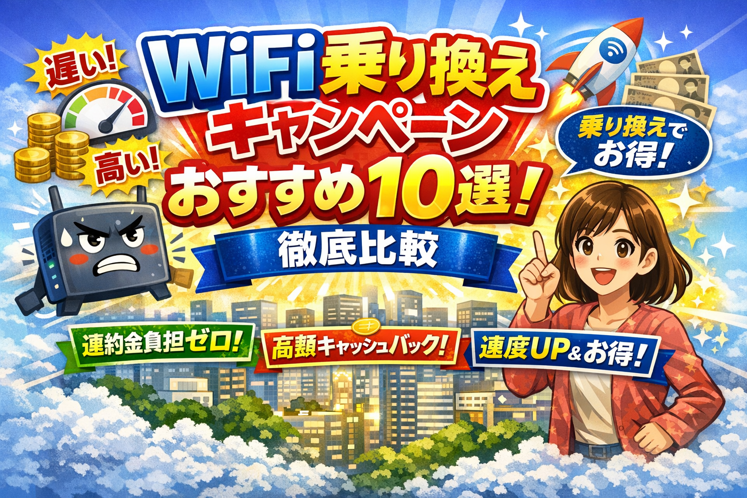 現在のWiFiが遅くてイライラしたり、料金が高く感じたりしていませんか?WiFi乗り換えキャンペーンを活用すれば、違約金負担を軽減し、高速で安いサービスにスムーズに移行できます。この記事では、おすすめのキャンペーンを比較し、初心者でもわかりやすい選び方を解説します。