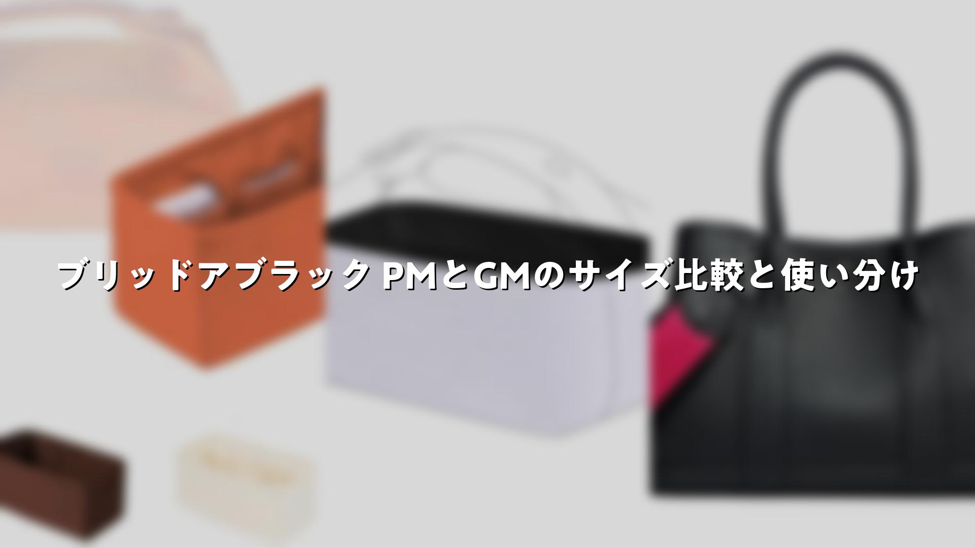 ブリッドアブラックのサイズは主にPMサイズとGMサイズの2種類。PMはコンパクトで日常使いに、GMはゆったりとした容量で多用途に活躍します。主な寸法はPMが約縦17cm×横21cm×マチ12cm、GMが約縦21cm×横25cm×マチ14cm程度(商品により若干の個体差あり)。これにより、PMは最小限のアイテムを、GMはより多くの物をスマートに収納可能です。