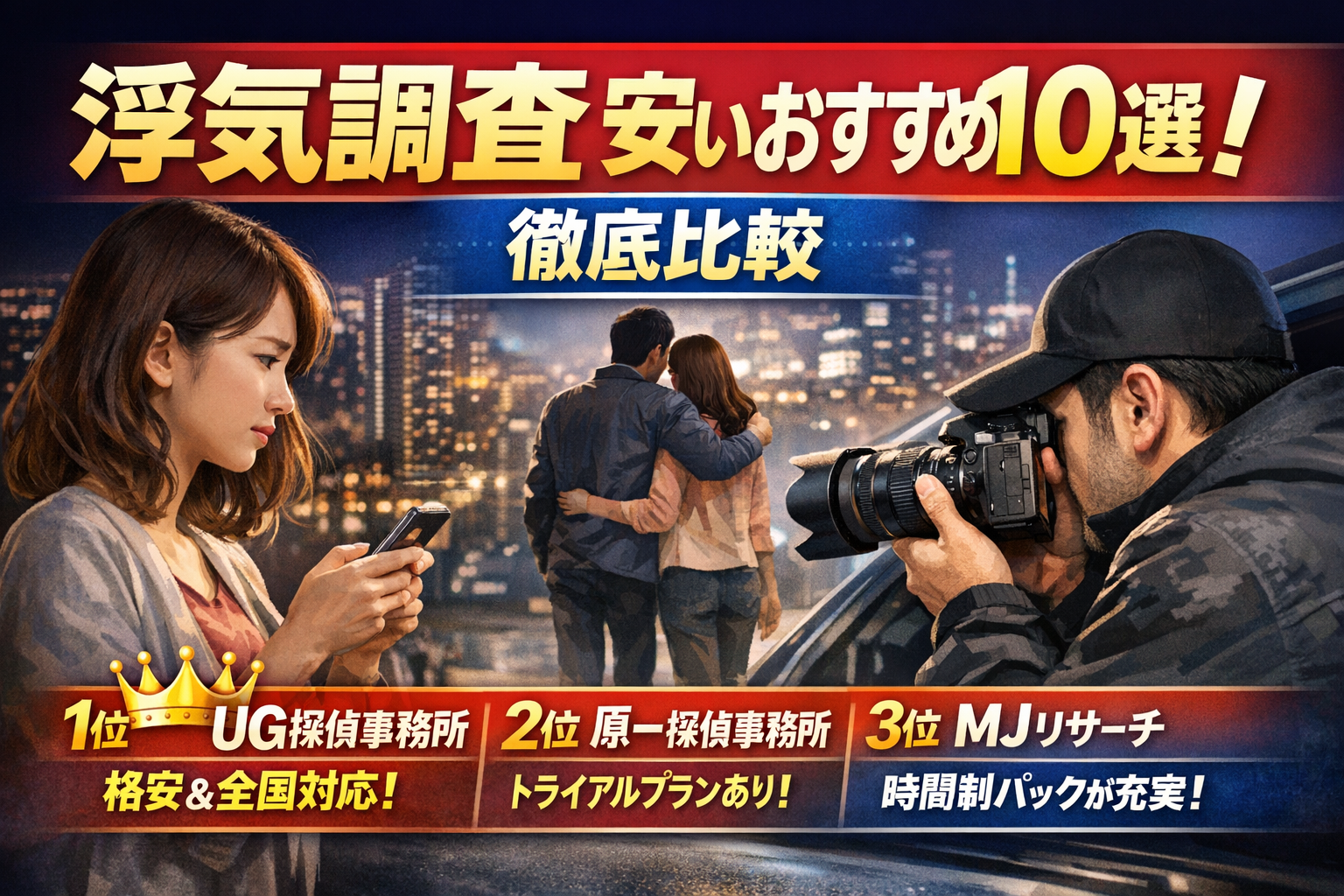 - 浮気調査 安いならUG探偵事務所が1位で、1時間5000円~のコスパ抜群