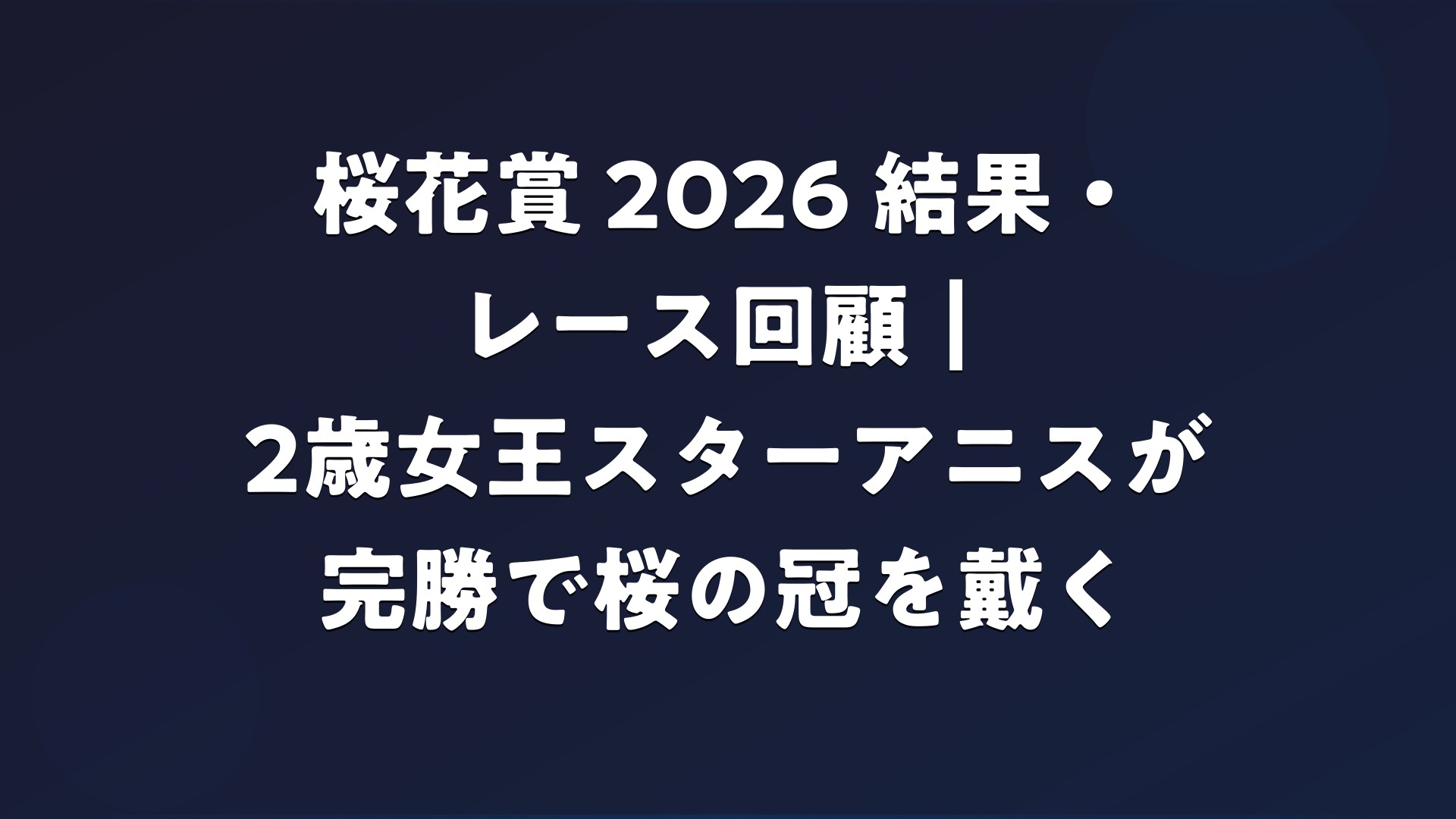 2026年4月12日、阪神競馬場で行われた第86回桜花賞(GI・芝1600m・良)は、1番人気スターアニス(松山弘平騎手)が2着ギャラボーグに2馬身半差をつけて完勝。昨年末の阪神ジュベナイルフィリーズに続くGI連勝で、名実ともに世代最強牝馬の座を不動のものにした。